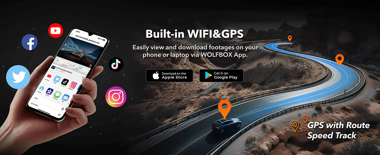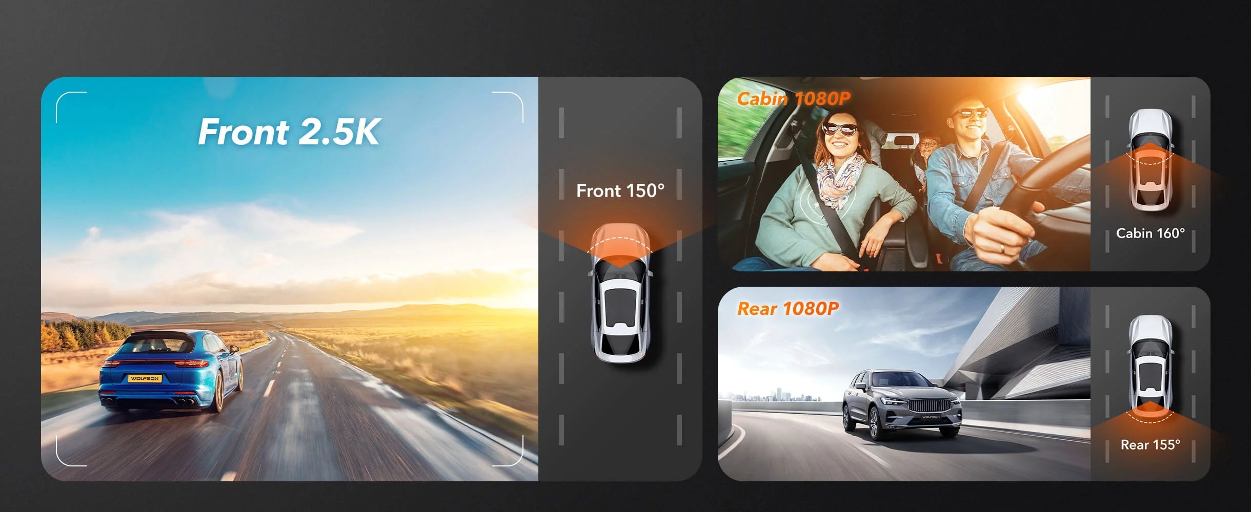 WOLFBOX i07 dash cams with WiFi and 3-channel capabilities provide easy access to recorded footage and capture video from multiple angles for added security.