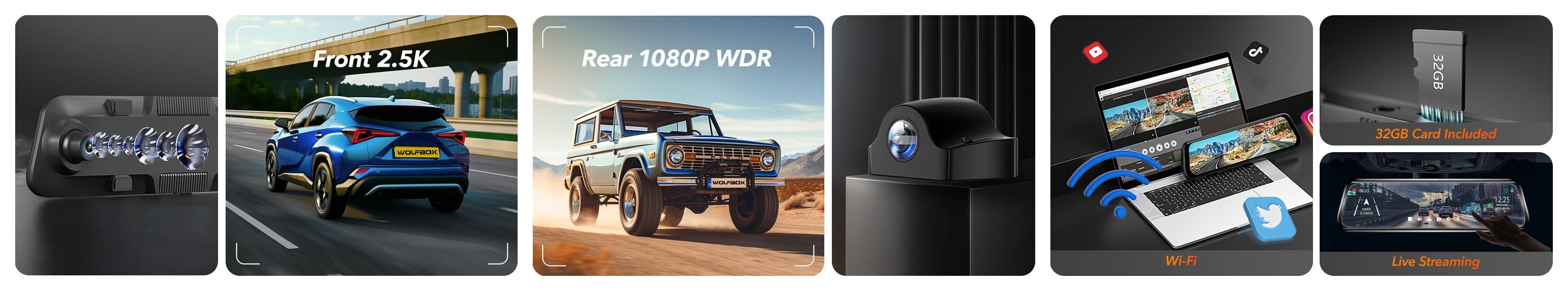 WOLFBOX G840H Rear View Mirror Dash Cam